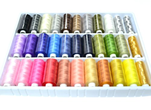 FILS à COUDRE, Une boîte de 33 bobines de 500 mètres SG couleur d'arc coloré couleurs couture 402 discussion Fils piquer manches partout polyester à coudre Fils de tricotage de machines à usage domestique avec d'or et d'argent rayonne broderie