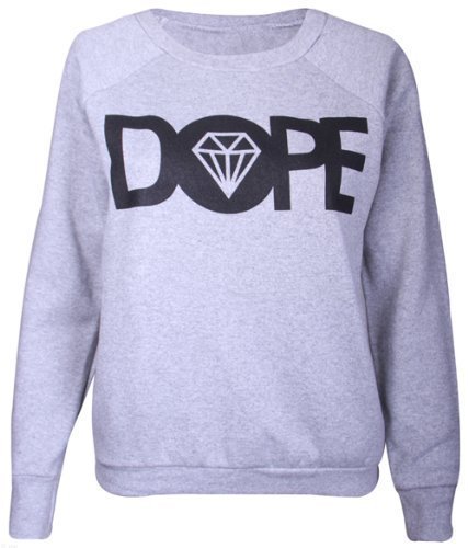 - Sweat neuf Dope pour femmes - Longues manches - Col rond - Slogan Dope et imprimé diamant sur l'avant - Longueur de l'épaule à l'ourlet 58,5 cm