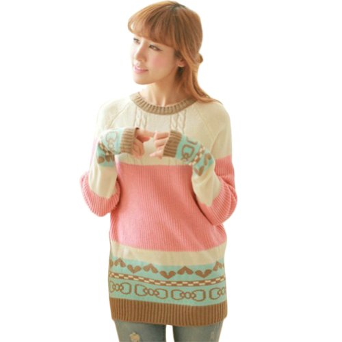 Luckshop2012 femmes pullover de chandail de tricots Tops ronde manches longues col