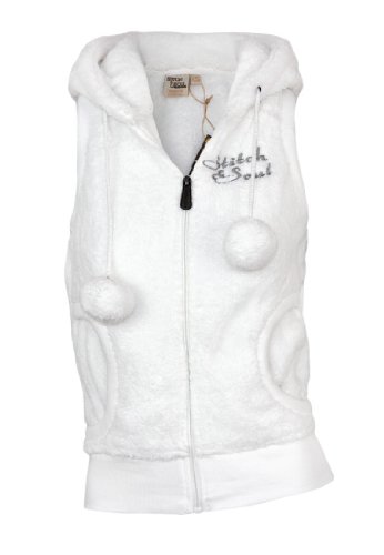 Stitch & Soul Fleece Gilet veste à capuche avec des oreilles, Taille:L;Couleur:White