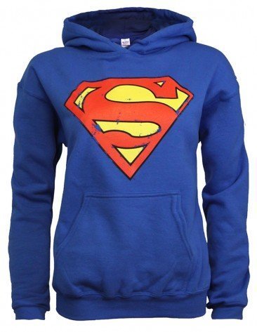 Superman Supergirl Femme Blue Distressed Shield Hoody