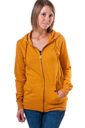 Timesoft Zip Fleece Veste sweat jaune de Volcom, Coupe classique, Capuche avec cordon de serrage, dans un aspect chiné, Fermeture-éclair sur toute la longueur, Poches italiennes sur les côtés avec étiquettes logo, Finitions bord-côtes confortables, Surpiqûre logo visible à l'arrière, Face intérieure douce, Longueur en taille S env. 67 cm, Composition: 70% Polyester 30% Coton, Notre modèle porte la taille S