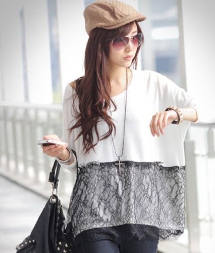 Caracteristique: Femmes de mode Casual Batwing long lacet shirt manches, basant la chemise, col ras du cou, une taille deux couleurs.