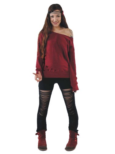 3 Elfen - sweat-shirt Pull sans bretelles - punk de fée - Femme - Rouge-Noir - Taille S