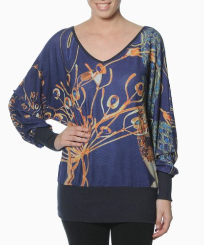 Pull à longues manches chauve- souris, col et dos en V. Manches et bas reserrés unis. 95% POLYESTER 5% ELASTHANNE.