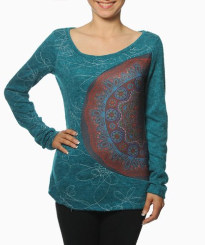 Pull à longues manches, col bateau. Ensemble de tissus. Mandala sur la partie avant, dos uni. 78% ACRYLIQUE 20% NYLON 2% ELASTHANNE.