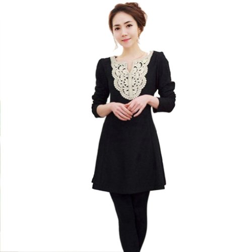 YI-siècle Nouvelle-coréen Noir Crochet creux robe à manches longues printemps