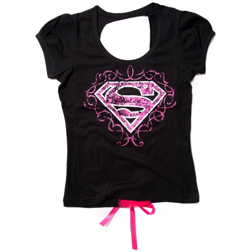 Accessoryo - Femmes Impression De Super-Héros Moyenne Avec Dentelle Dans Le Dos T-Shirt En Coton Noir
