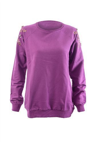 HIDDENFASHION - Haut Femme Sweat Shirt Pull Mauve Coupe Ample Clou Diamant Fantaisie sur les Epaules - Mauve, 38