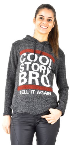 Ce sweat femme est coupé ample, ajusté à la taille, effet loose-fit. Sa matière molletonnée effet chinée composée à 90% d'acrylique est agréable à porter, et idéale pour la saison. Ce sweat femme dispose d'une capuche ajustable à l'aide de ficelle. Ce haut tendance est imprimé de sérigraphies cool story bro à l'avant.