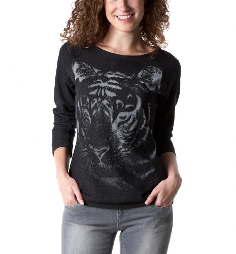 Pour être suivie par toutes les autres modeuses, adoptez tout de suite ce sweat-shirt décoré d'une grande tête de tigre ! Encolure arrondie dégagée. Emmanchures raglan. Base droite. Poignets légèrement resserrés. Dos uni. Longueur 59 cm environ.